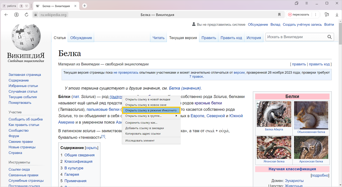 Нажмите ссылку правой кнопкой мыши и выберите Открыть ссылку в режиме Инкогнито.