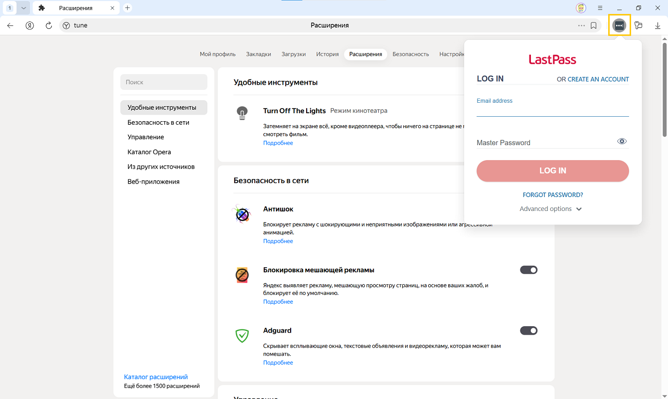 Расширения — это встроенные в браузер мини-программы, которые добавляют новые возможности, например блокируют неприятную рекламу, включают ночной режим или управляют паролями. В Яндекс Браузере можно устанавливать расширения, созданные командой Браузера, или из внешних каталогов: браузера Chrome или браузера Opera.