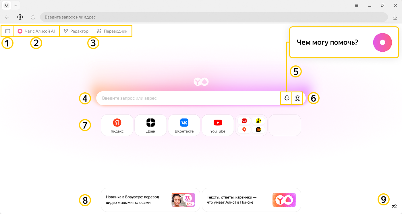 В правом нижнем углу экрана нажмите Настройки и выберите элементы, которые хотите видеть на новой вкладке: Поисковая строка, Нейроинструменты, Подсказки по Браузеру и Табло.