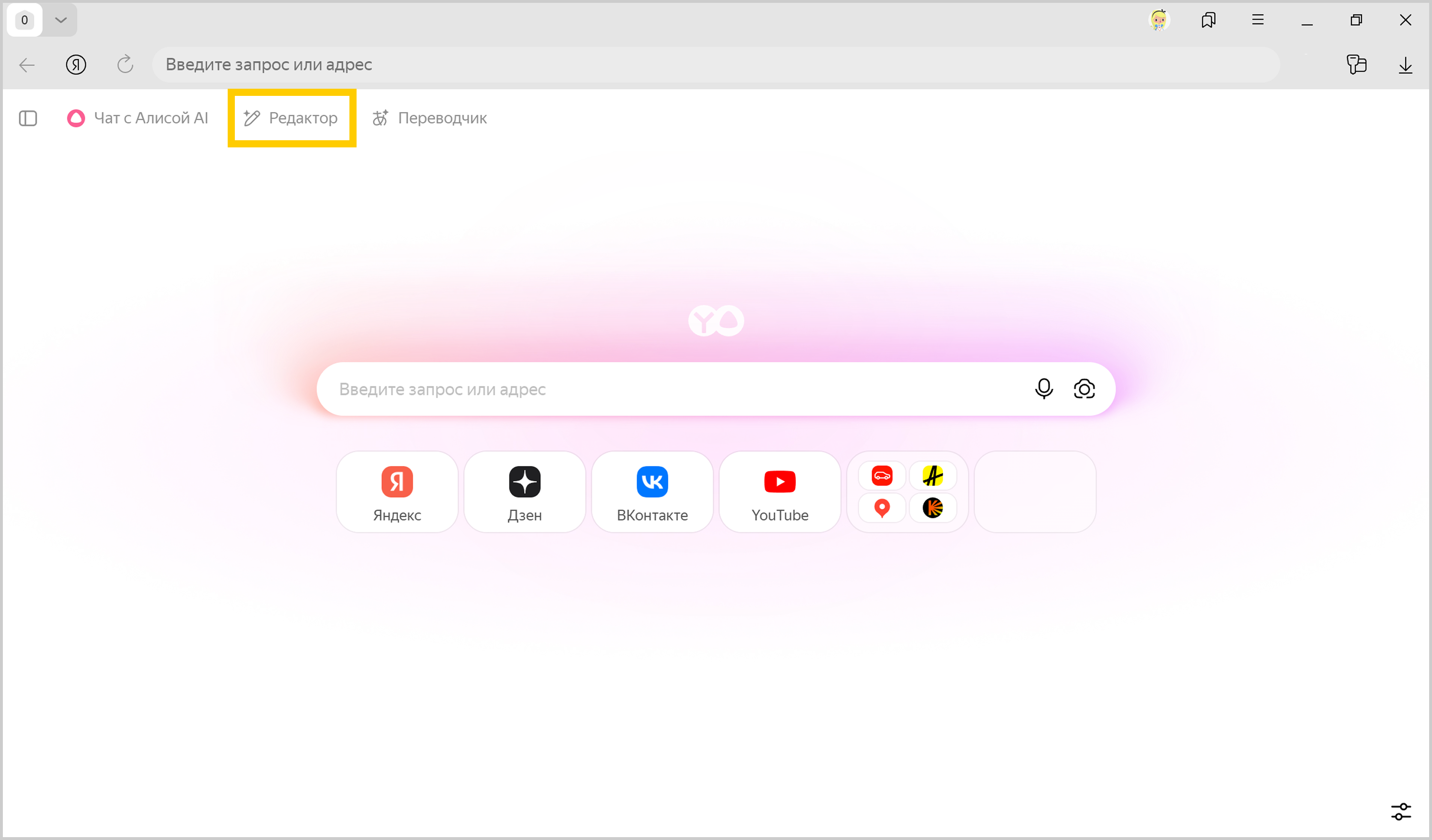 На экране новой вкладки