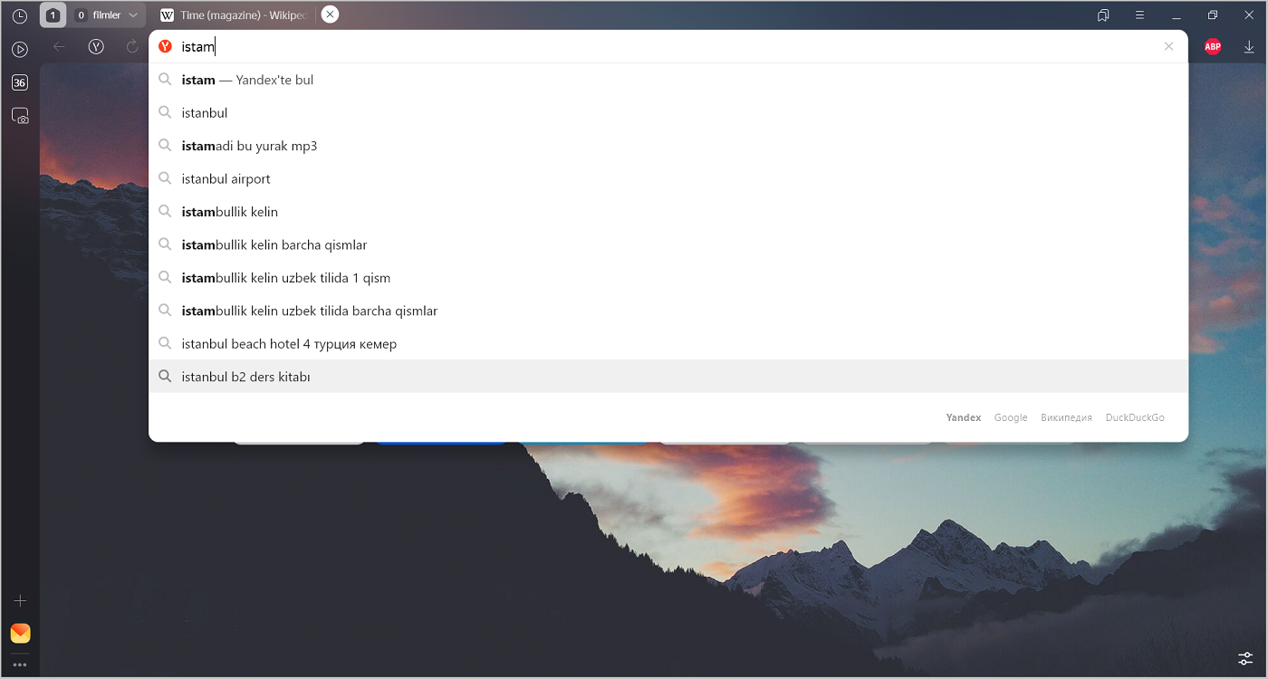 Yandex arama satırındaki sorgular