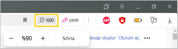 Sayfa ölçeğini yanlışlıkla değiştirebilirsiniz (örneğin, parmağınız Ctrl tuşuna basılı fare tekerleği kaydırıldığında). Normal ölçeğe dönmek için, Akıllı Satır’ın sağ tarafında bulunan