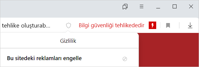 Engellenen içerik bilgisayarınız için ciddi bir tehlike oluşturuyorsa bu içeriği yükleyemezsiniz. Bu durumda Bu sitede reklam engelleme bölümünde Sekme için engellemeyi kaldır bağlantısı olmayacaktır.