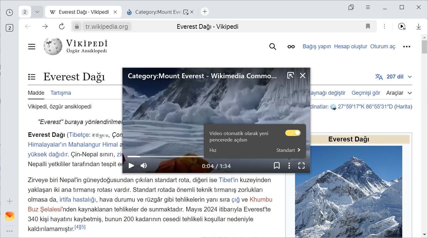 Ayrı pencerede video