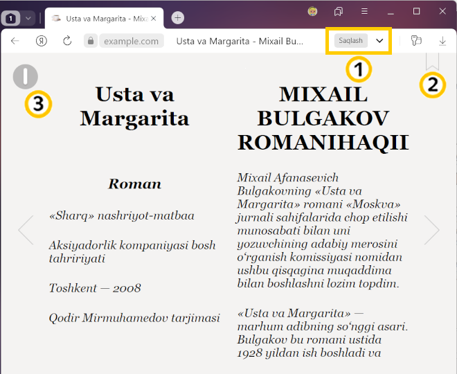 1. Brauzer oynasining yuqori oʻng burchagida belgisini bosing.