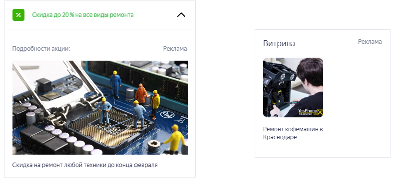 Мы покажем в Картах акции, товары и услуги из витрины. Кроме того, компания получит зеленую метку и поднимется в результатах поиска.