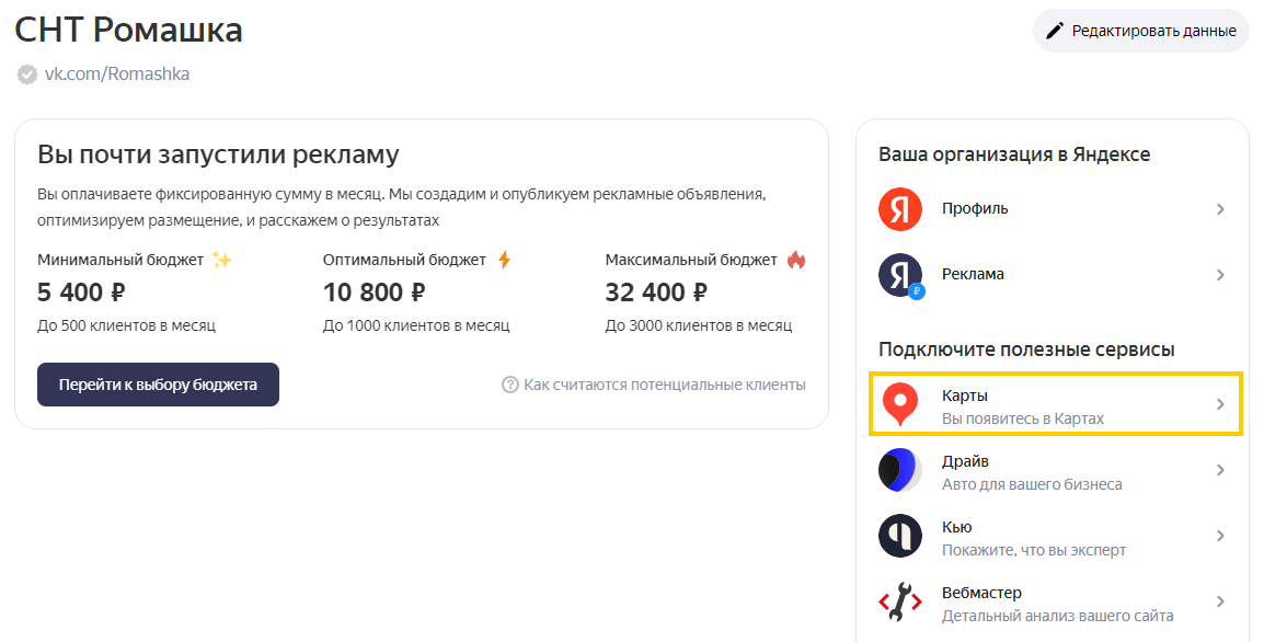 Справа в блоке Подключите полезные сервисы нажмите Карты.