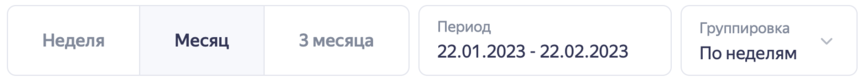 Выберите период, за который хотите посмотреть статистику: неделя, месяц, три месяца. Можно указать произвольный период. Выбранный период будет действовать для всех графиков статистики.