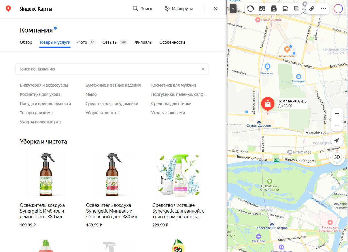 - У партнера есть информация об актуальных товарах и услугах компаний, которые представлены на Яндекс Картах.