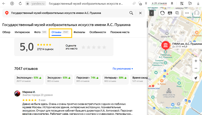 Пользователь может поставить оценку и не написать комментарий, но оставить комментарий без оценки нельзя. Поэтому в профиле компании количество оценок может быть больше, чем отзывов. Оценки без комментариев можно посмотреть в Картах.