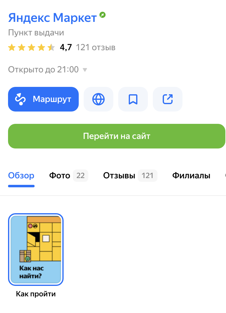 Показывать путь от ближайшей остановки общественного транспорта или парковки, если у организации есть свой вход в здании.