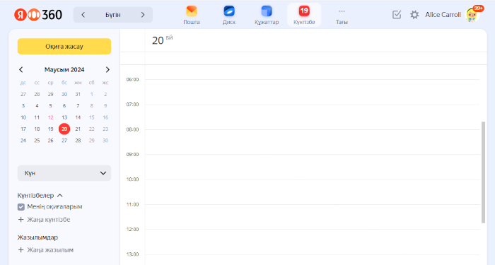Күнтізбені ашу үшін calendar.yandex.kz сілтемесі арқылы өтіңіз.