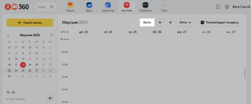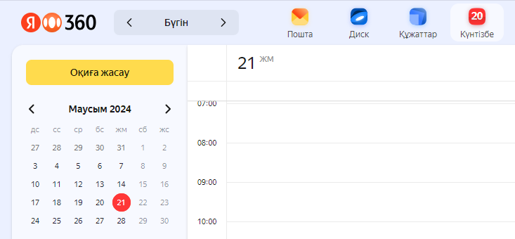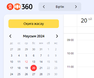Егер Күн немесе Апта режимдерінде сіз барлық іс-шараларды көрмесеңіз, онда олар жай ғана экранға сыймайды. Күнтізбенің парақшасын тінтуір дөңгелегімен немесе оң жақтағы айналдыру жолағының көмегімен төмен парақтаңыз.