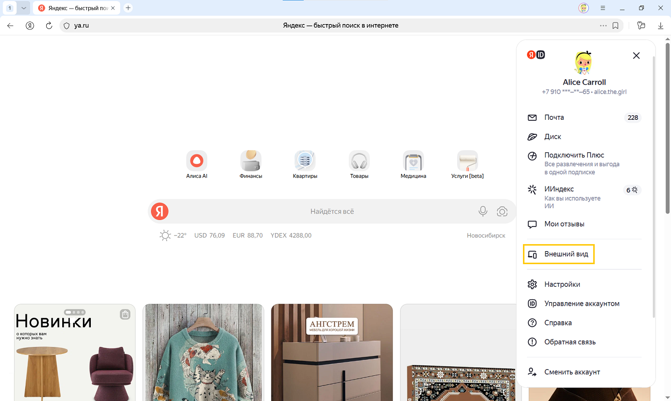 Чтобы включить темную тему для главной страницы, войдите с Яндекс ID.