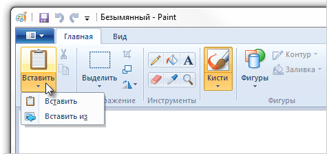 Нажмите сочетание клавиш Ctrl + V или в верхнем меню программы нажмите кнопку Вставить (для Windows 7 и выше).