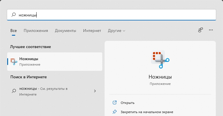 «Ножницы» позволяют сделать скриншот части рабочего стола или всего экрана.