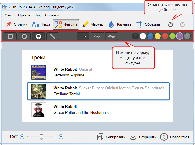 В программе Яндекс Диск вы можете делать снимки экрана, оформлять их в редакторе, а также делиться ими. Готовые изображения сохраняются в папку Скриншоты на вашем Диске.