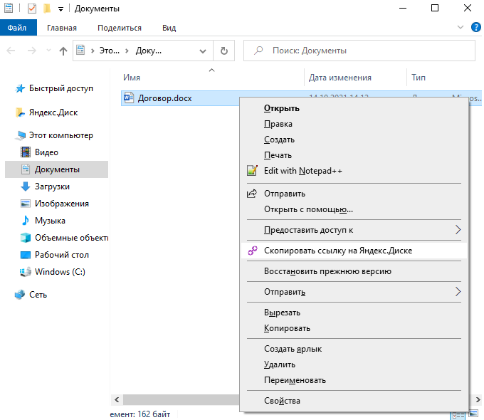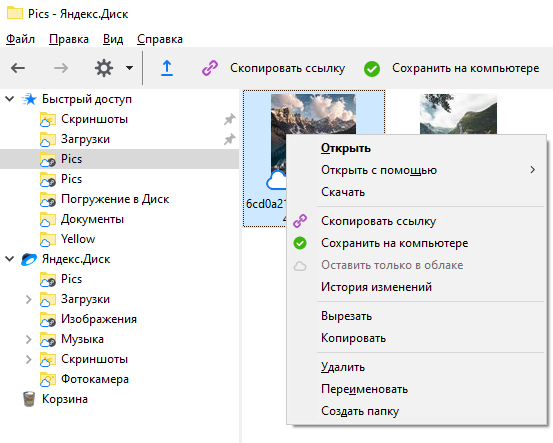 Тінтуірдің оң жақ батырмасымен объектіге басыңыз да, контекст мәзірінен Яндекс Дискідегі сілтемені көшіріп алу тармағын таңдаңыз.