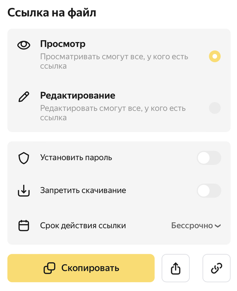 Нажмите Скопировать ссылку и отправьте ее друзьям или коллегам любым удобным способом.