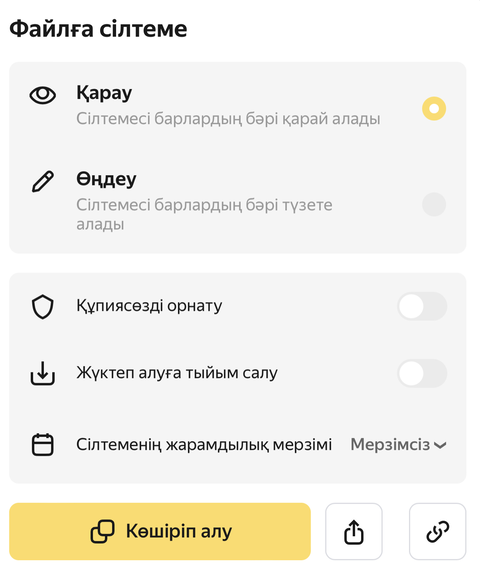 Сілтемені көшіріп алу батырмасын басып, оны достарыңыз немесе әріптестеріңізге кез келген ыңғайлы тәсілмен жіберіңіз.