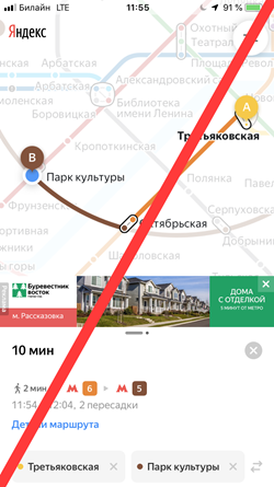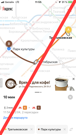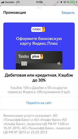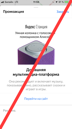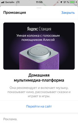 Tapping Go to site redirects users to the link specified by the advertiser (in agreement with Yandex). The link can lead to a site, app, messenger, App Store, or Google Play.