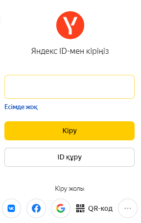 Яндекс ID-ді тіркеген кездегі логиніңізді енгізіңіз және Кіру батырмасын басыңыз.