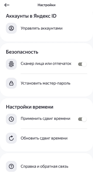 Чтобы генерировать одноразовые пароли в приложении Яндекс ID (Ключ), понадобится устройство с системной защитой от несанкционированного доступа: пин‑кодом, биометрией (распознаванием по лицу, отпечатком пальца) или графическим ключом. Перед работой с приложением установите любой доступный способ блокировки в настройках телефона или планшета.