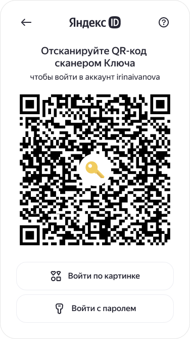 На любой сервис или в приложение Яндекса можно войти по картинке, с помощью QR-кода или по паролю + одноразовому паролю из приложения Яндекс Ключ или другого приложении на базе алгоритма TOTP RFC. Вход с комбинацией постоянного и одноразового пароля — это один из самых надежных способов входа в аккаунт.