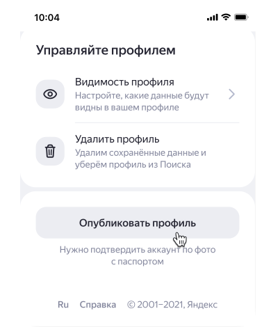 Нажмите Опубликовать профиль.