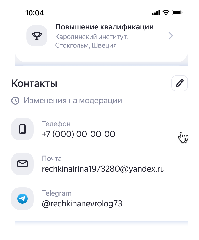 Вы можете подтвердить свой профиль врача через Яндекс ID, чтобы самостоятельно редактировать информацию о себе и отвечать на отзывы пациентов.