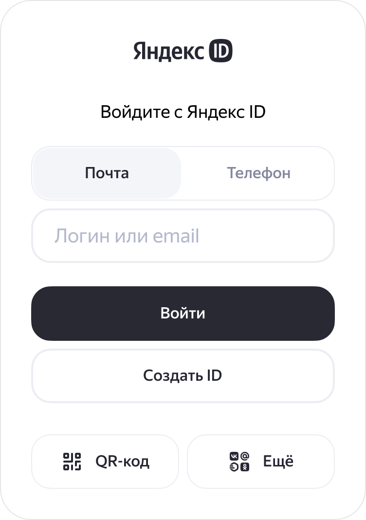 Введите логин, с которым вы зарегистрировали свой Яндекс ID, и нажмите кнопку Войти.