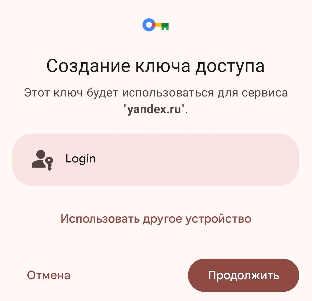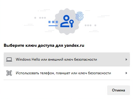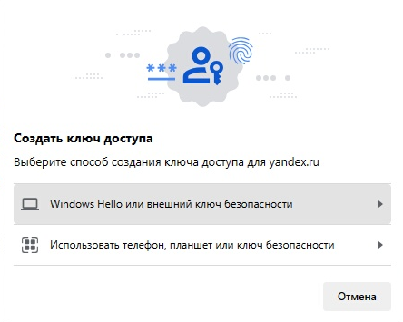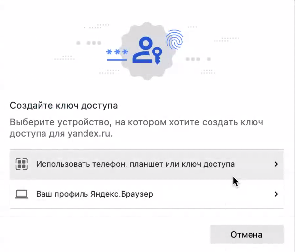 Настраивая устройство, вы добавляете ключ доступа в Яндекс для конкретного браузера. Если вы хотите использовать такой способ входа на других устройствах, после завершения подключения добавьте настроенный ключ доступа на каждое устройство.