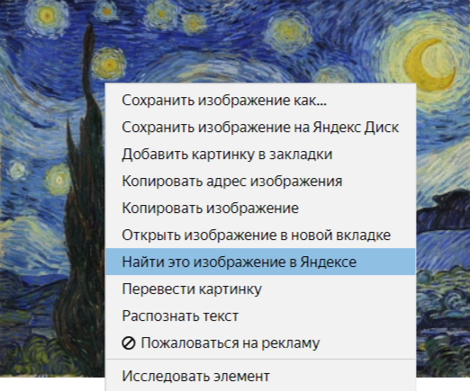 В контекстном меню выберите пункт Найти это изображение в Яндексе.