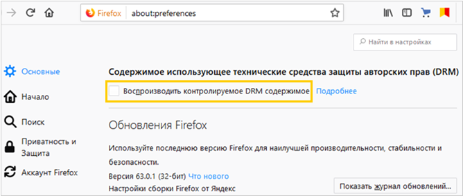 → Параметрлер және негізгі қойындысына өтіңіз. - Авторлық құқықты қорғаудың техникалық құралдарын (DRM) пайдаланатын мазмұн блогында DRM бақыланатын мазмұнды ойнату опциясын қосыңыз.
