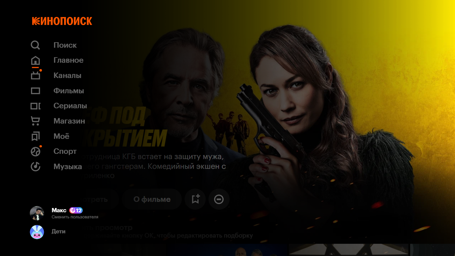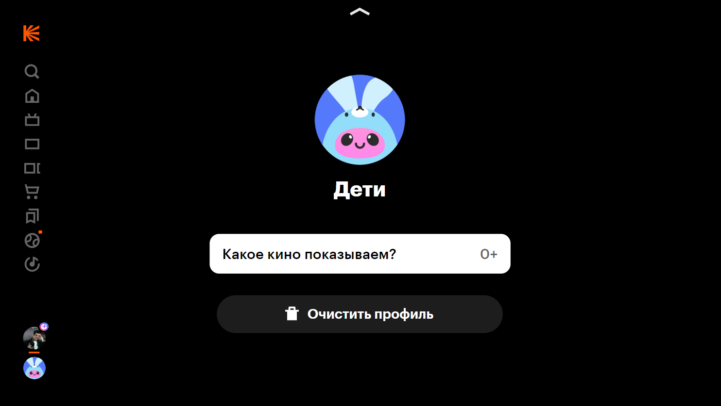 Балалар режимінде Кинопоисктың қалған мүмкіндіктері қосылмайды. Бала жазылымды сатып ала алмайды немесе төлей алмайды.