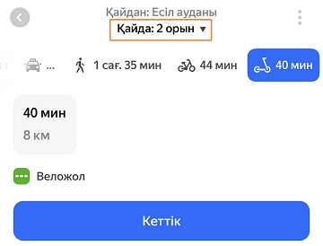 Автокөлік, қоғамдық көлік немесе жаяу маршрутты құрсаңыз, функция жұмыс істейді.