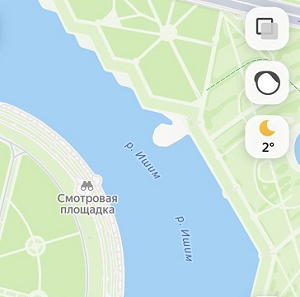 Яндекс Карты қосымшасынан сіз даладағы күн райы туралы біле аласыз. Ол үшін картадан қажетті аумақты таңдап, экранның оң жақ жоғарғы бөлігіндегі батырмаға басыңыз — алдағы тәулікке арналған болжамы бар карточка ашылады.