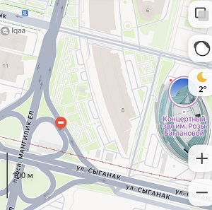 Ауа райы туралы ақпарат нұсқасы 25.5 және одан кейінгі Яндекс Карты қосымшасында қолжетімді.