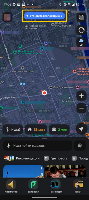 - Нажмите кнопку Уточнить геолокацию.