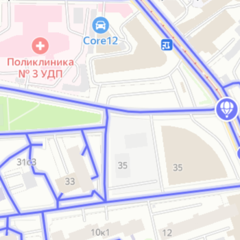 Улицы, для которых на Картах есть панорамы, выделены на карте цветом.