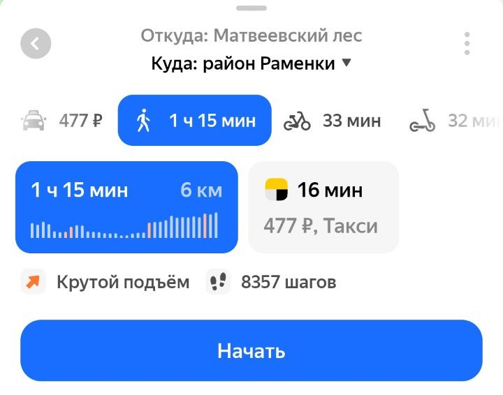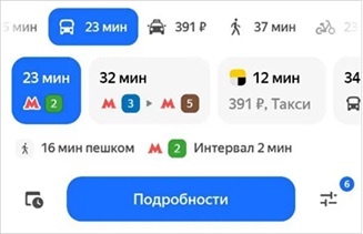 Например, точка начала маршрута находится далеко от станции метро, и нужно долго добираться пешком или на автобусе. Карты предложат вам доехать до станции метро на такси и продолжить путь на общественном транспорте.