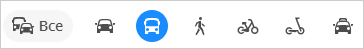 Бағдар түрін таңдаңыз: автокөлік, жаяу жүргінші немесе велосипед, самокаттағы, қоғамдық көліктегі немесе таксимен сапар бағдары.