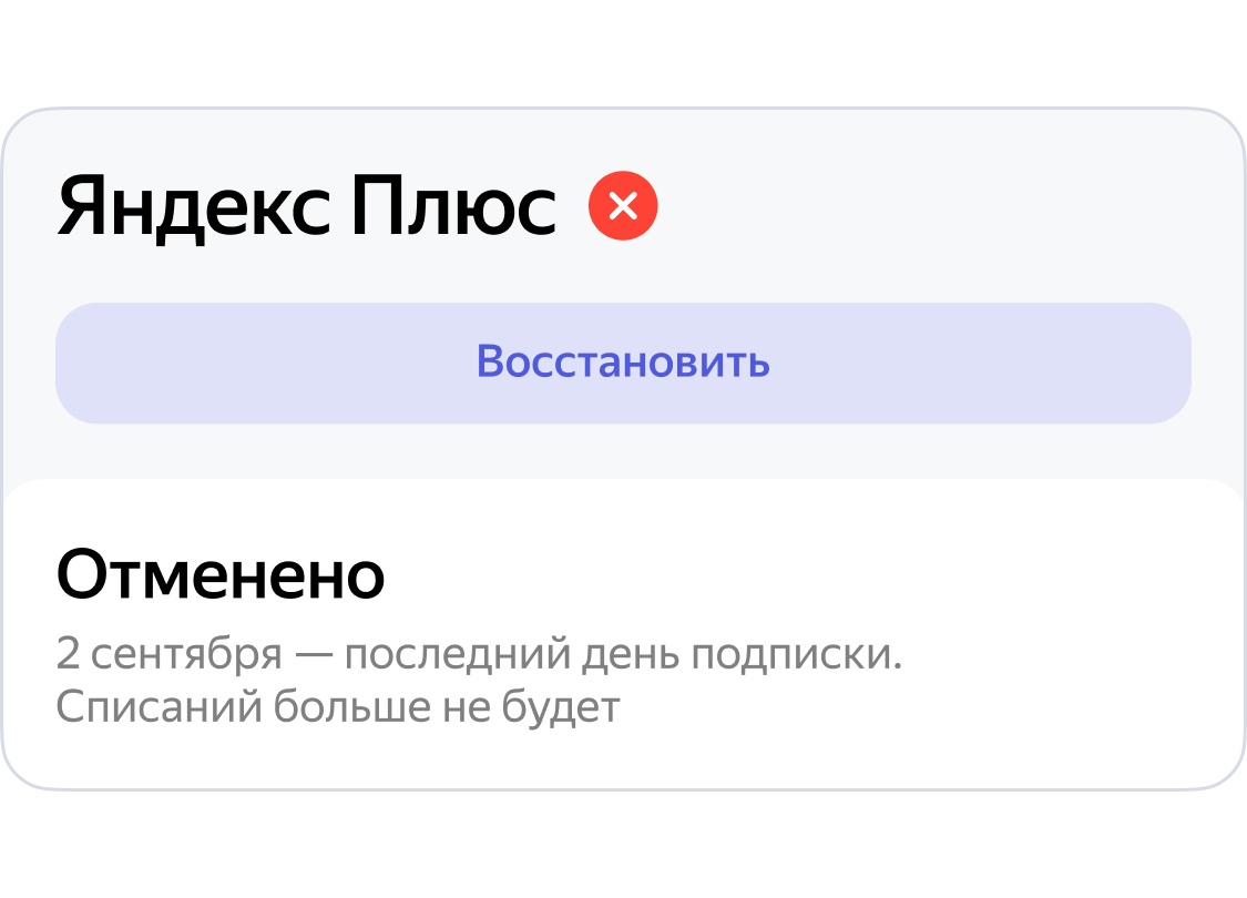 Егер сіз жай ғана Кинопоиск немесе Яндекс Музыка қосымшаларын өшіріп тастаңыз, есептік жазбаңыздан шығып немесе оны жойсаңыз — Плюс өздігінен өшпейді. Артықшылықтар сол күйі белсенді болады және ақша есептен шегеріле береді. Егер сіз жазылымнан бас тартқыңыз келсе, оны төмендегі нұсқауларға сәйкес жасаңыз.