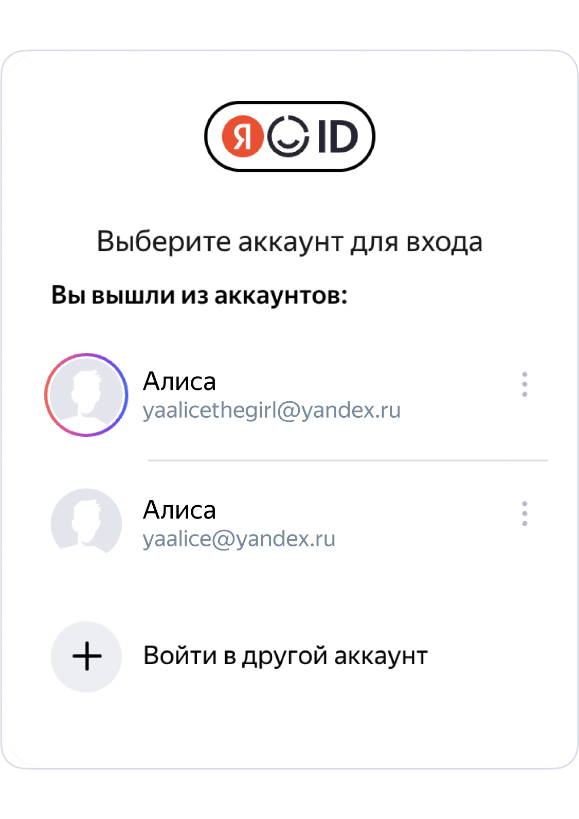 Айналасы түрлі-түсті болып жанатын есептік жазбаға өтіңіз— оған Плюс қосылған. Егер тізімде есептік жазба жоқ болса, бұл сіздің құрылғыңызда ешқашан белсенді жазылымы бар есептік жазбаға кірмегеніңізді білдіреді.