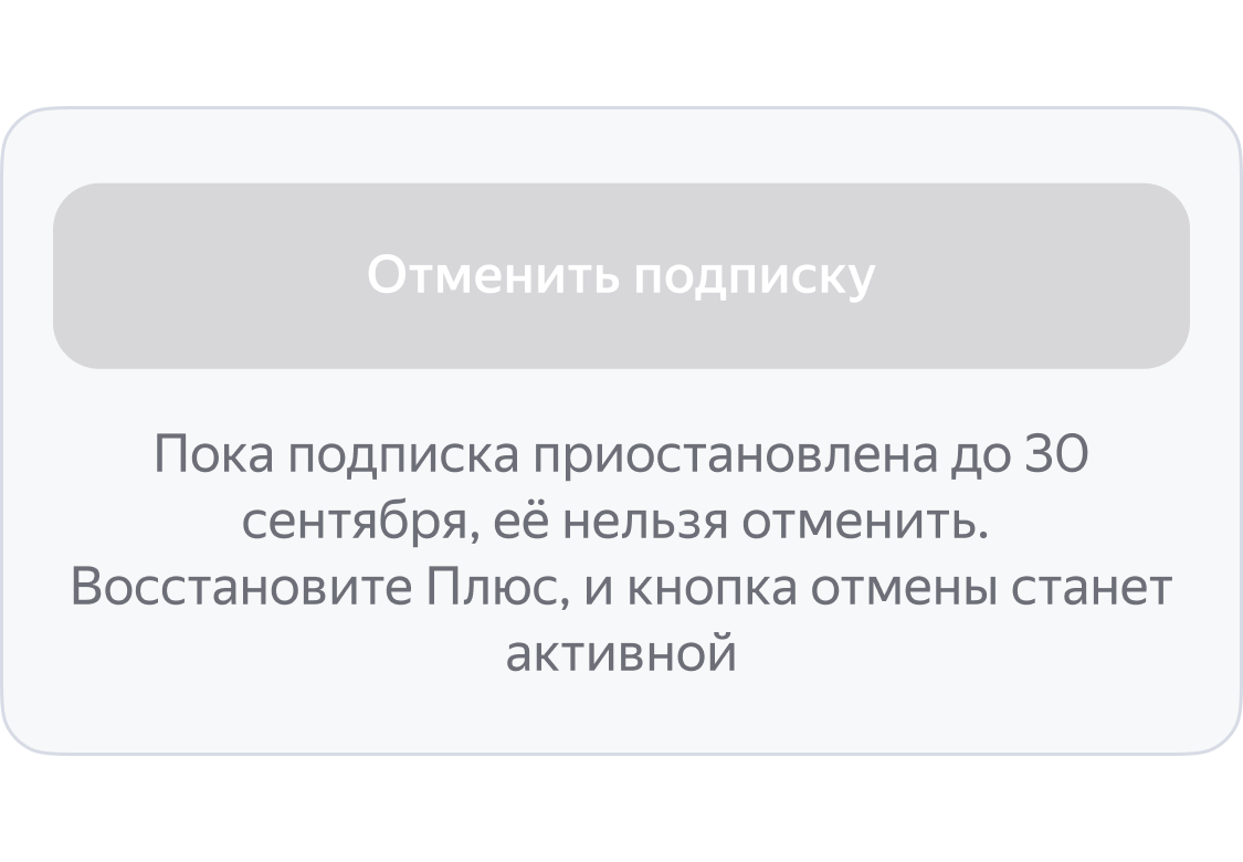 Жазылымды кідірту батырмасы, Плюсті өшірмейді. Оны басқан жағдайда, жазылым тек уақытша тоқтатылады. Кідірті кезеңі өткенде, жазылым қайтадан пайда болады және ақша есептен шығарыла береді.