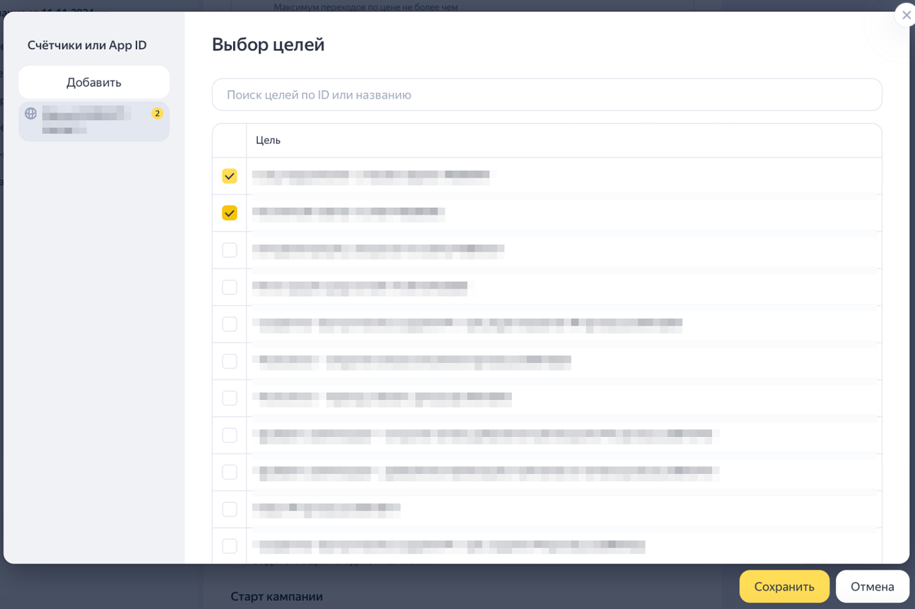 Если необходимо оптимизироваться на несколько целей в рамках одной кампании, мы рекомендуем указывать 2 цели.
