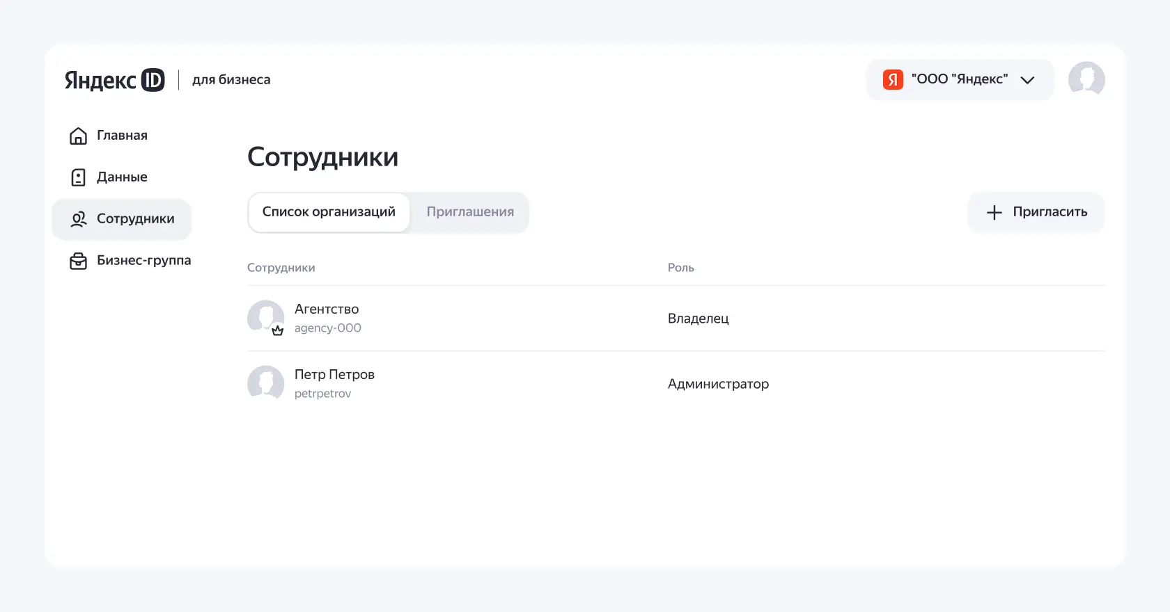 Авторизуйтесь в Яндекс ID под агентским аккаунтом.