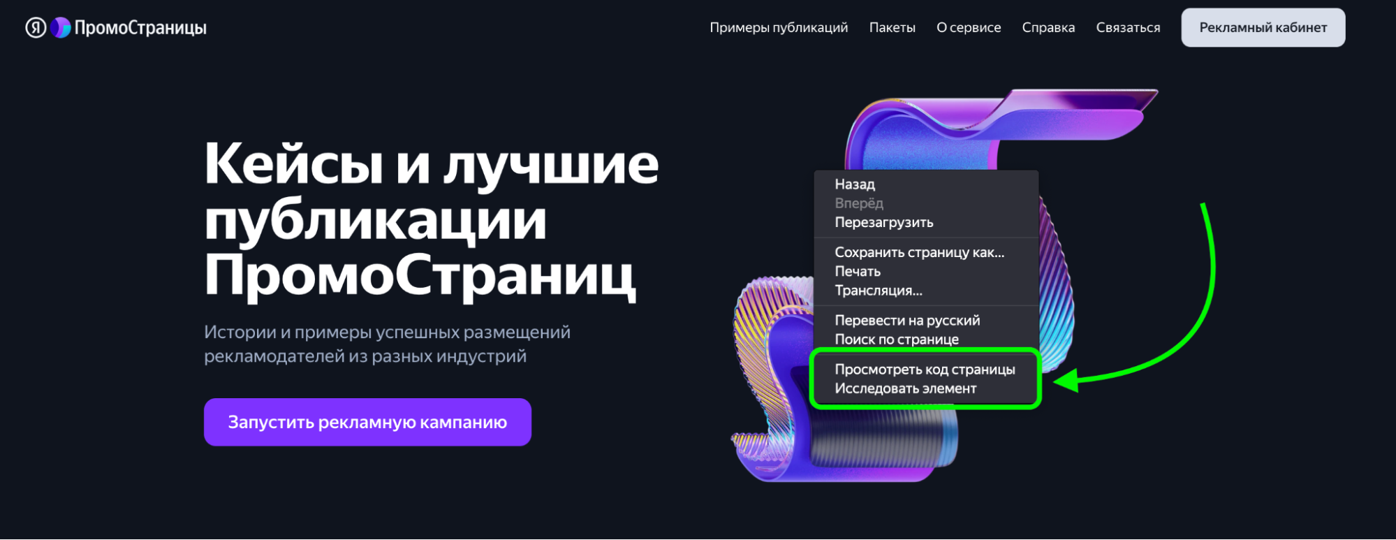 Откройте кабинет ПромоСтраниц.