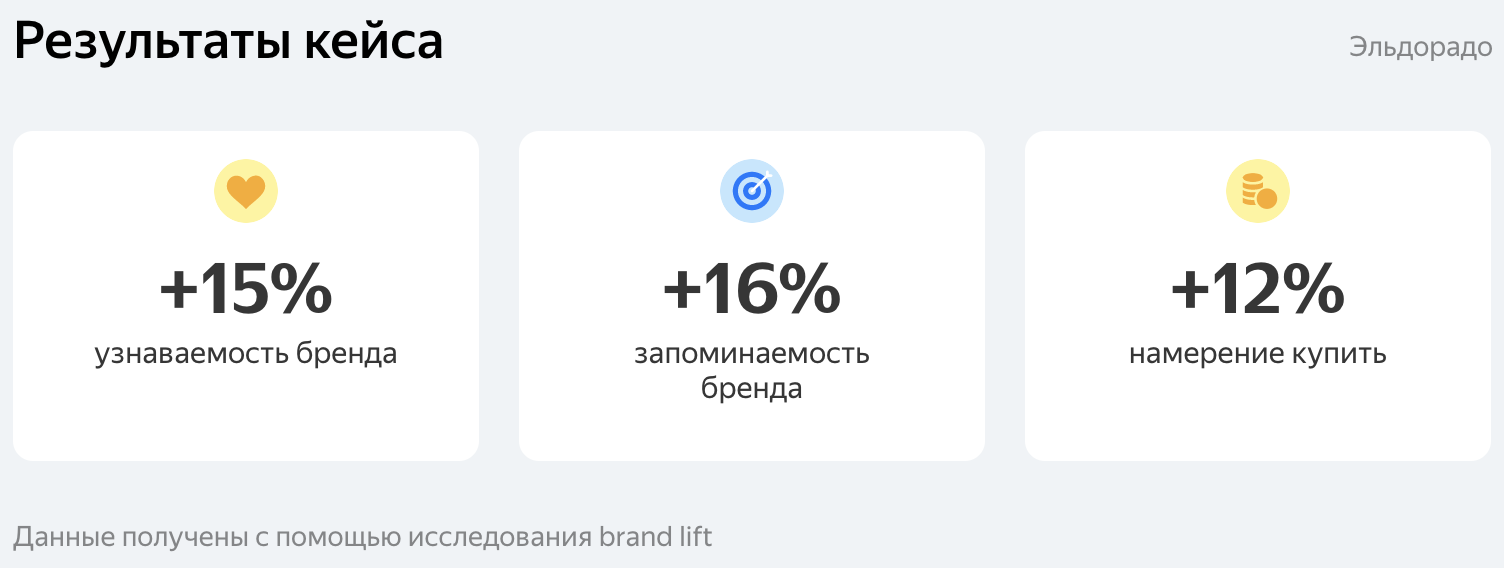 «Креатив — одна из ключевых составляющих успеха рекламы. В условиях большого количества кампаний, как у «Эльдорадо», тестировать их через фокус-группы и кабинетные исследования невозможно из-за времени и стоимости. Поэтому такие продукты, как Яндекс Взгляд, максимально полезны как для рекламодателей, так и для агентств. Благодаря этому мы можем оценивать эффективность кампании заранее и в сжатые сроки, корректировать рекламу и потенциально увеличить результат.»