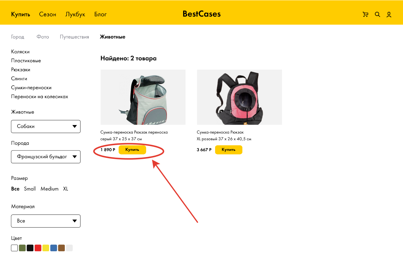 Вы изучили ассортимент, определились с выбором и хотите купить товар. Куда нажмете? |